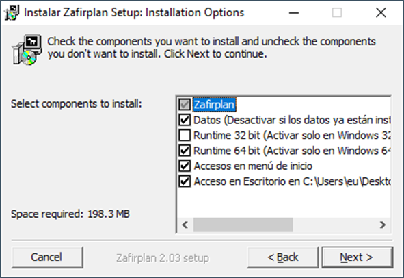 En esta nueva ventana, se seleccionan los elementos a instalar.