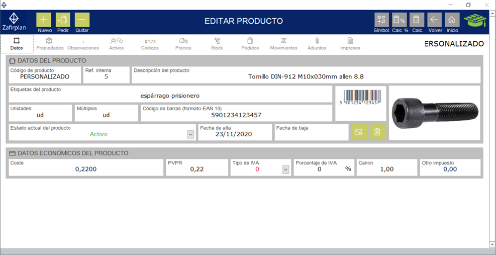 venta. Maneja códigos de barras EAN-13 asignados por el fabricante del producto, y Code 128 para los códigos