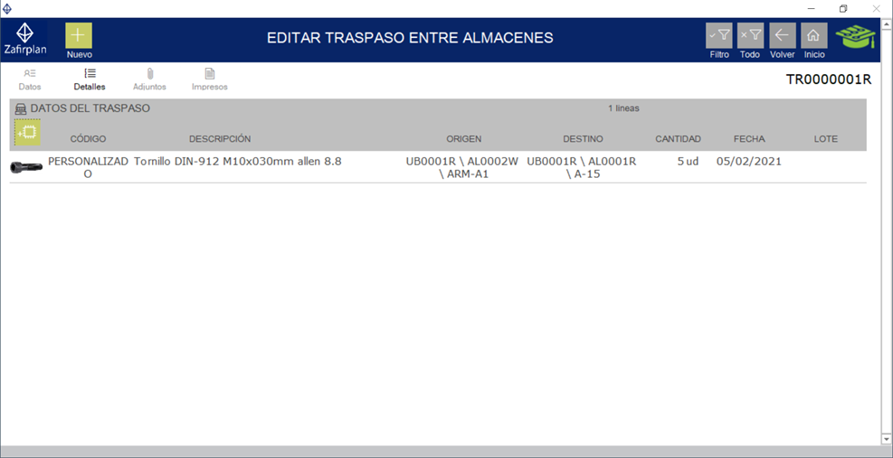 pedidos y salida de material del almacén, controlando la trazabilidad.