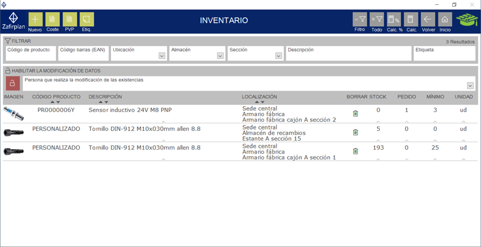 - Múltiples ubicaciones, almacenes y secciones (sin límites).