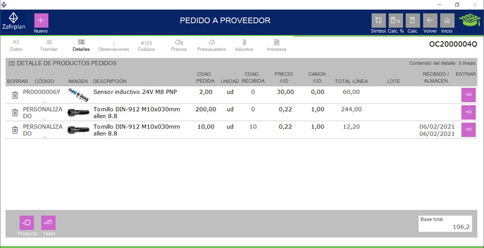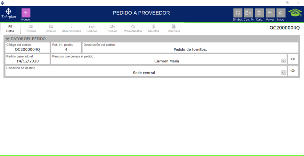 pedido a proveedor.