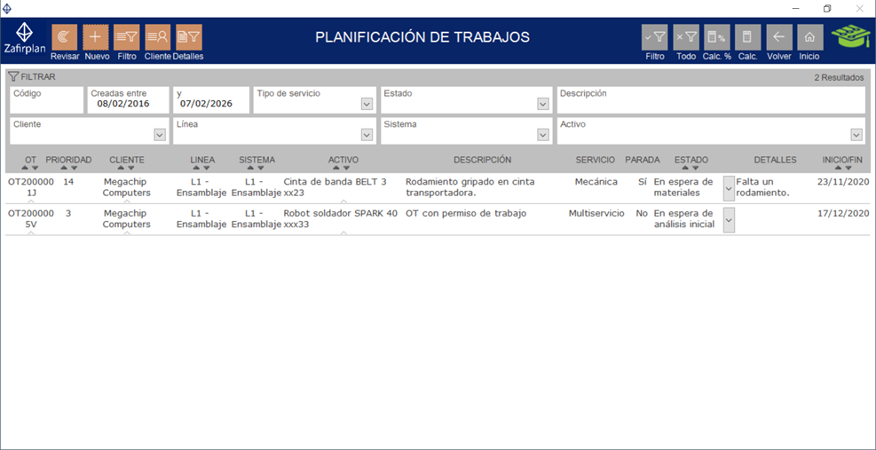 Zafirplan es una aplicación para planificar y gestionar el mantenimiento de activos.