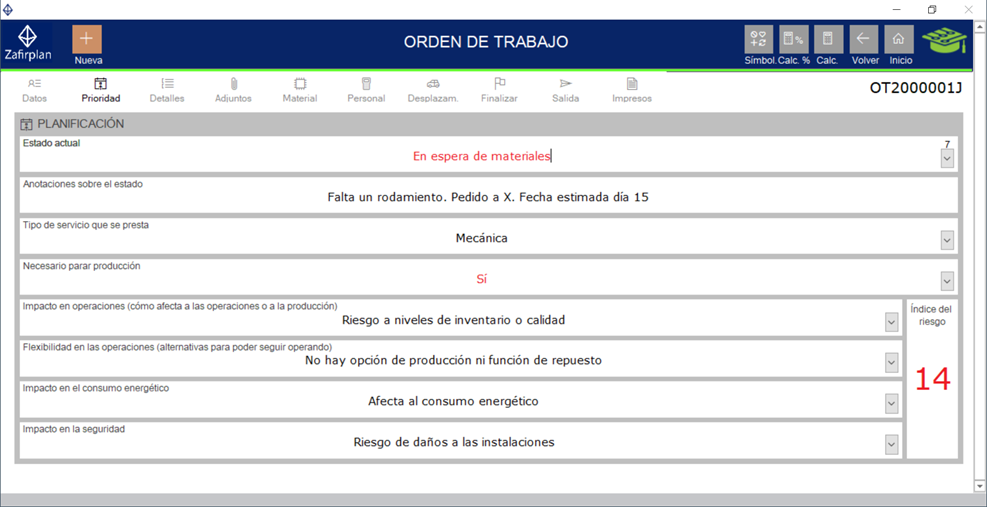 ventana de edición, donde ya se pueden introducir los detalles. Al crear la OT, se copian los datos desde el