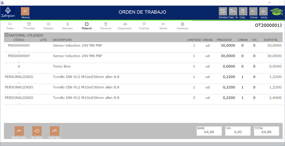 se deben rebajar, será necesario volverlos a añadir una vez creada la orden de trabajo.