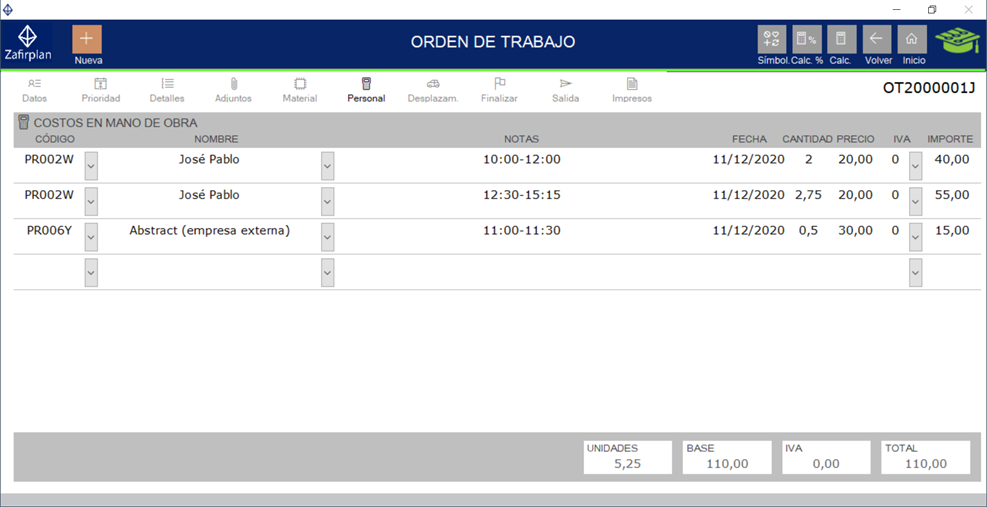 la persona que genera la OT y la fecha, con lo que aparecerá el código de la nueva OT. Al pulsar sobre este